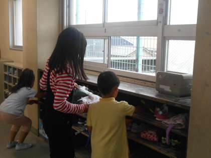 1年生のお手伝いに行っている人も、6年生の担当場所を掃除している人も、テキパキ動いて掃除をしています。