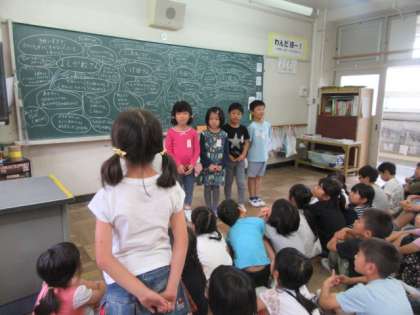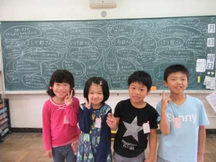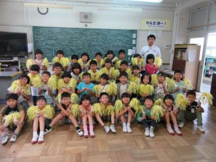 体調がすぐれなかった5月生まれのお友だちが,やっと学校に来られるぐらいに回復しました。さっそく,きのうのメッセージを伝えました。体育大会の手具を持って,ダンスをがんばった記念写真も撮りました。