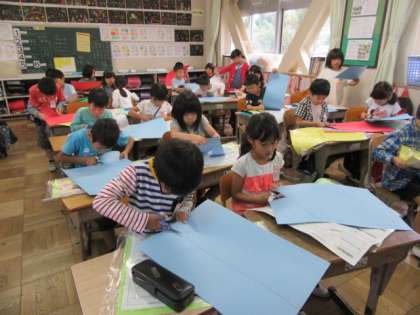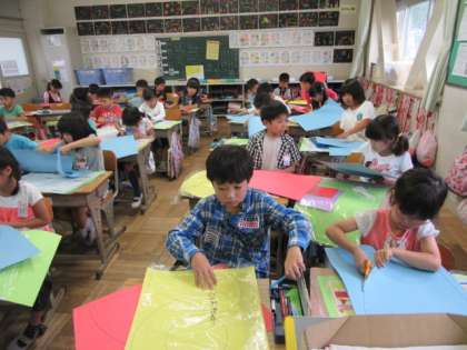 「すてきなぼうし」を作り始めました。三角ぼうしにするか,シルクハットにするかの2択です。