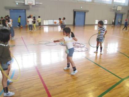 雨天時の体育館解放の日でした。バスケットをしたり,フラフープで楽しみました。