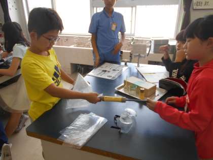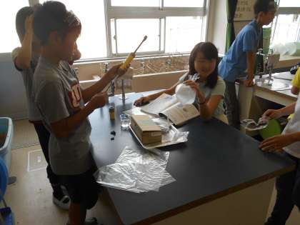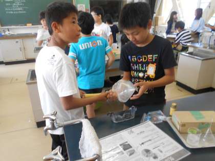 呼吸によって,空気や息の成分にどれだけのちがいがあるのか調べました。