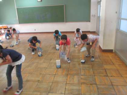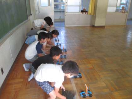 作った車で早速遊びました。これから楽しく実験していきましょう。