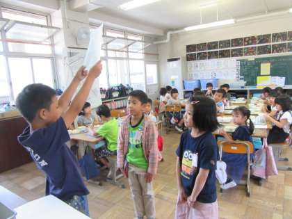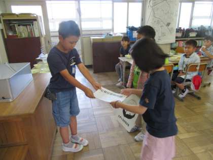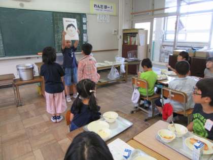 給食中,給食委員会の人が,6月の給食目標「きれいに手を洗おう」と食品の栄養のポスターを届けてくれました。ありがとうございます!