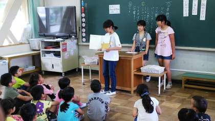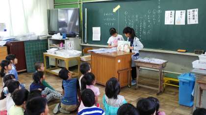 図書委員会では,5月30日,6月1日,6月5日の3日間でそれぞれ1・2・3年生に読み聞かせをしに行っています。6月1日は2年生に読み聞かせをしに行きました。2冊本を用意して読んであげたり,読んだ本に関するクイズを出したりと,各グループ工夫を凝らして読み聞かせをしていました。