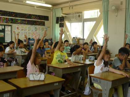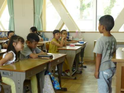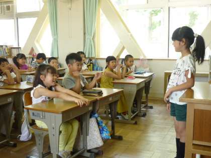 朝のスピーチの様子です。友だちのスピーチにたくさん質問してくれています。