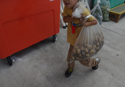 運ぶのが重たいくらいの豊作です!!!みんなで分けて、持ち帰りました。「お家でカレーに使おうかな!」など、楽しみにしている子がたくさんいました。