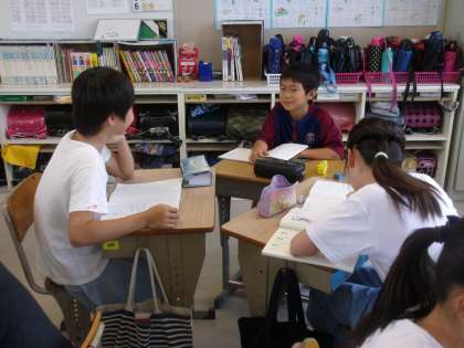 「聞いて聞いて聞いてみよう」では、3人1組になってインタビューをします。