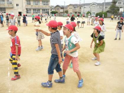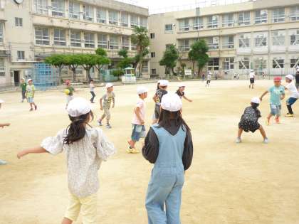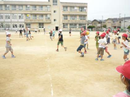 みんな遊びをしました。今日は,ドッチボールです。投げ方も避け方も上手くなってきています。