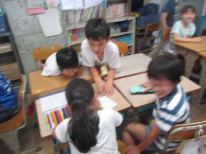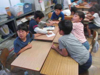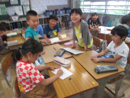 外は大雨だったので,教室で校外学習の班の役割決めとチーム名鵜を考えました。校外学習の日は晴れてほしいですね。