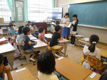 朝の読書タイムの時間に図書委員会の子どもたちが読み聞かせにきてくれました。