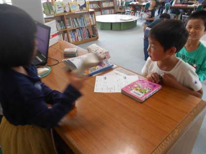図書係の仕事を頑張っています。