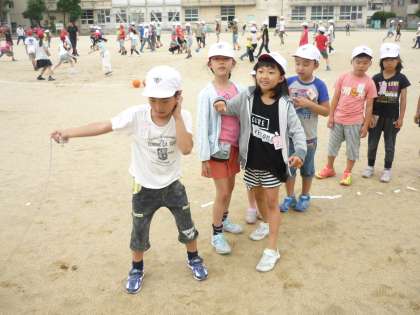 みんな遊びの時間に,すっかり晴れてくれました。今日は長縄です。だんだん上手に跳べるようになってきました。