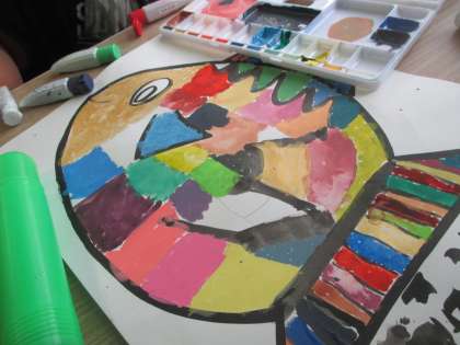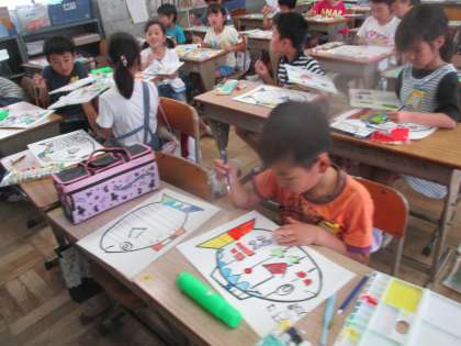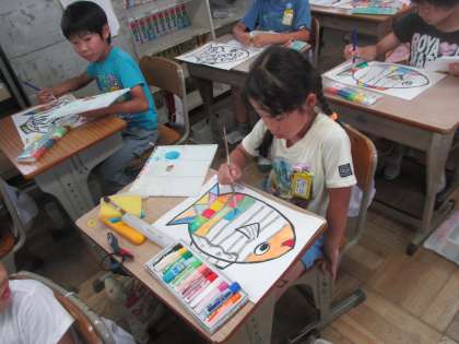 虹色の魚を完成させました。色を作り,変え続けるのは大変でしたが,カラフルな魚がたくさんうまれました。