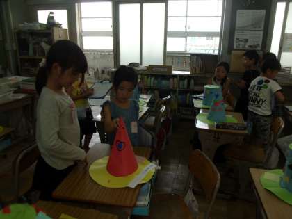作った帽子の鑑賞をしました。