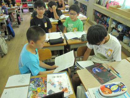 発表を聞いて,お互い再現しあいながら理解を深めています。