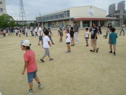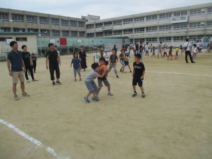 大勢の子どもたちと保護者の方々が参加し,ドッジボール大会が開かれました。元気な声が運動場いっぱい広がりました。
