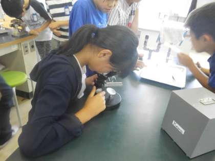 解剖顕微鏡でメダカの卵の中の様子を調べました。