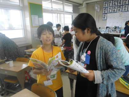 「Do you like〜?」の言い方でペアになって質問をし合いました。