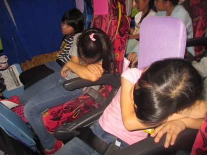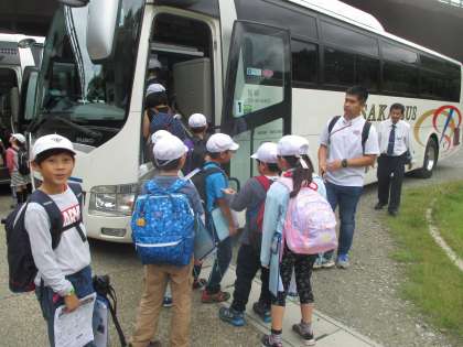 センターの方とハイタッチして帰ります。帰りのバスでは疲れて寝てしまった人もいました。実りある1日でしたね。