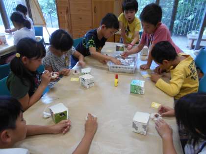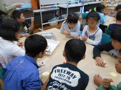 堺自然ふれあいの森では2グループに分かれて,「どんぐりカモさん作り」と「森のクイズラリー」をおこないました。