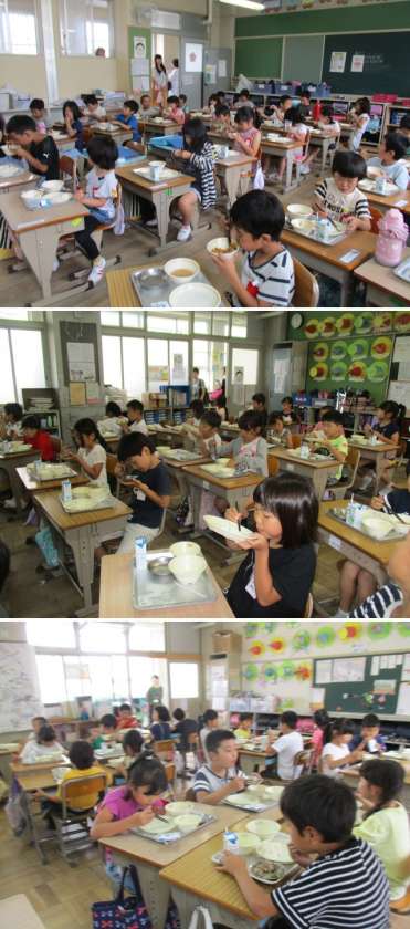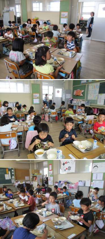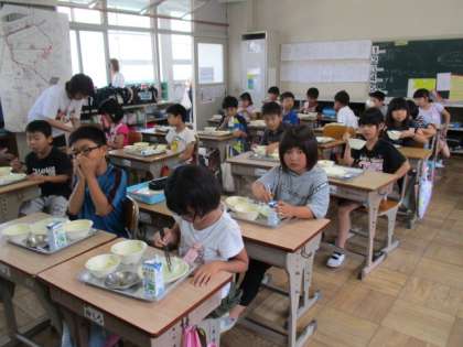 子どもたちは、静かに給食を食べることができていました。
