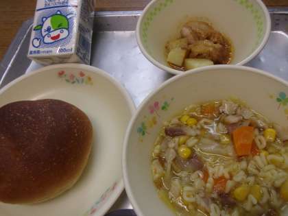 マカロニスープ・タンドリーチキンポテト