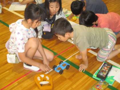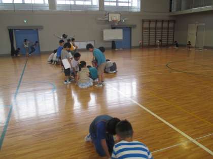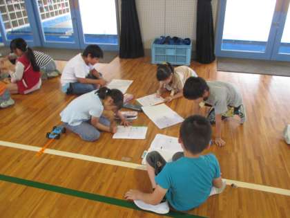 体育館で実験です。手際よく実験し,考察も上手にまとめられるようになってきました。
