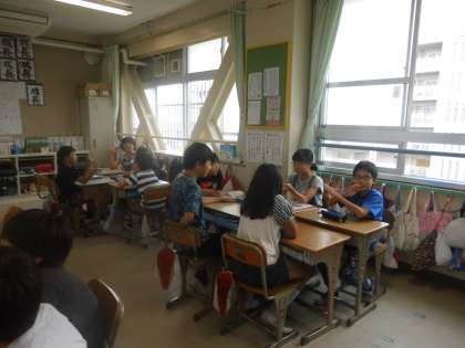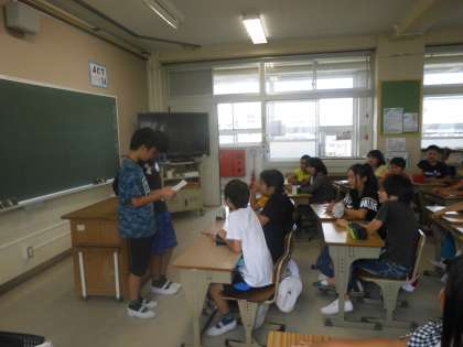 臨海学校のキャンプファイアーの実行委員を中心にキャンプファイアーでする出し物を決めました。