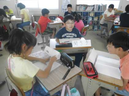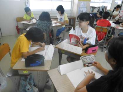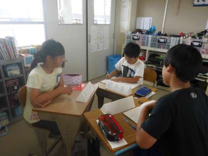 「きき手」「話し手」「記録者」の役割を決め,インタビューを行いました。