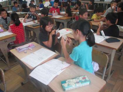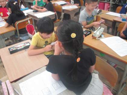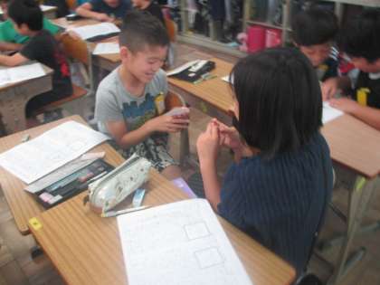 気になる記号の報告文を読みあいました。付箋によかったところを書いて,相手に送りました。