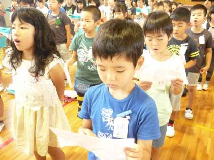 「にじ」をみんなで歌いました。明日天気になるといいですね。