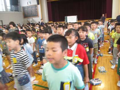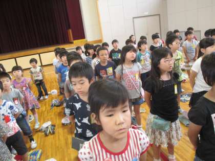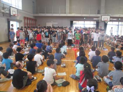 「にじ」を全校で歌いました。3年生もきれいに歌いました。