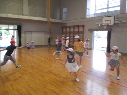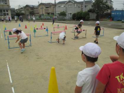 雨が上がり,運動場でも元気に交流あそびをします。6年生のアイディア満載で楽しいね。