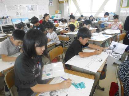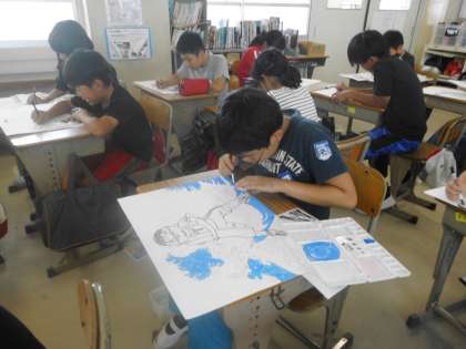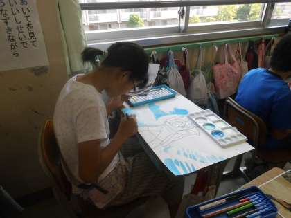 ソーラン節の波の色をぬっていきました。背景の部分がとても迫力あるものに仕上がってきています。