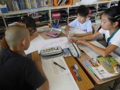 班で広告を使って食材の産地を調べ,気づいたことを交流しました。