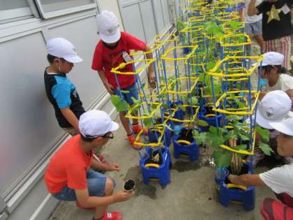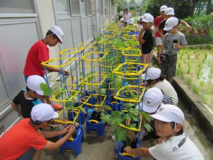 牛糞の追肥を行いました。個人懇談会(7月11日・12日・13日)におうちの方に家に持って帰っていただくまで,水やり・草抜きをがんばりましょう。