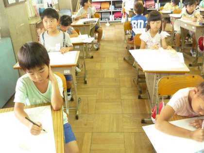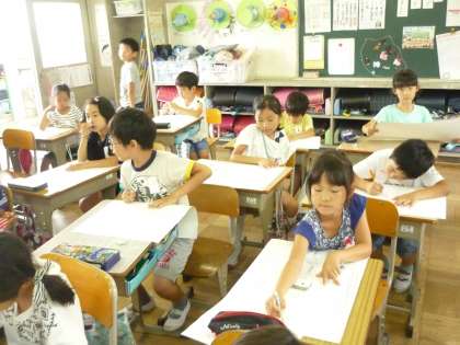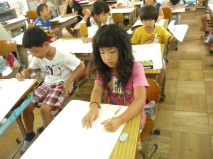 大きな画用紙に自分のぼうしのかぶった姿を下書きしました。