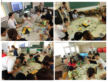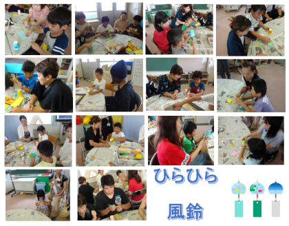 紙コップと鈴を使って、お家の人と一緒に風鈴を作りました。短冊には、クワガタやスイカ、かき氷やひまわりなど、夏の絵を描きました。みんな楽しんで作っていました。