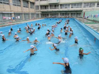 5〜6時間目だったので,プールの水はぬるくて,お風呂みたいでした。