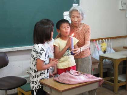 最後は,6月7月生まれの人たちに,ろうそくを吹き消してもらいました。ねがいごとがかなうといいですね。心が豊かになるひとときをありがとうございました!