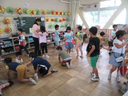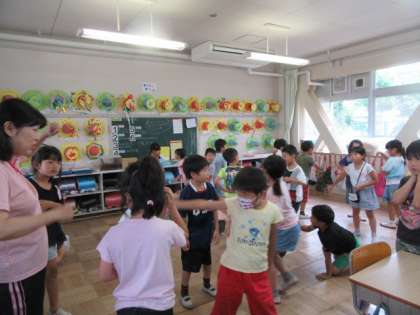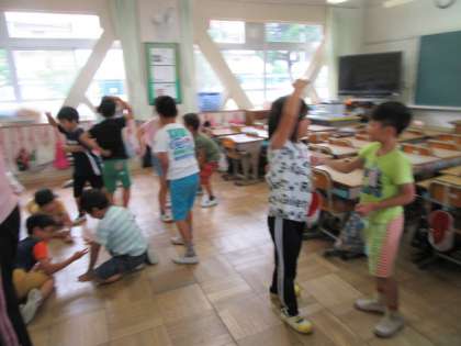 雨で運動場が使えまいので,昼休みに「進化ゲーム」をしました。ゴキブリや猿やゾウや人間になってじゃんけんで進化してきます。神様になったら,あがりです。ゲームを楽しんでいました!
