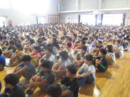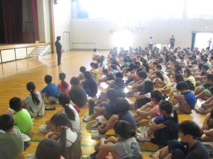 今日の児童集会では,校長先生から0157についてのお話がありました。今,私たちの給食は調理員の方々が一生懸命気を付けて,安全にいただくことができています。安全でおいしい給食がいただけること,命あるからこそ楽しい日々がおくれているということを考えました。