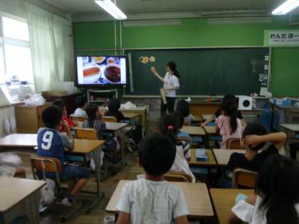 栄養教諭の先生と,野菜のはたらきについて学習しました。