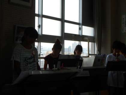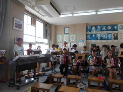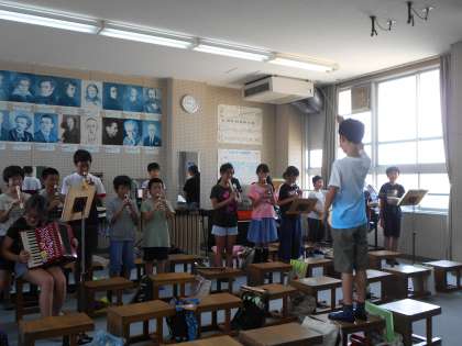 今日は,今まで練習してきた合奏曲「ラバース・コンチェルト」を担任の先生に披露しました。