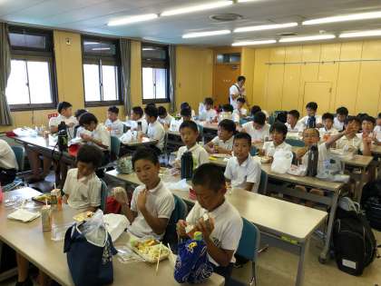 昼食です。午前中しっかり活動できたので、お弁当が本当においしいです。