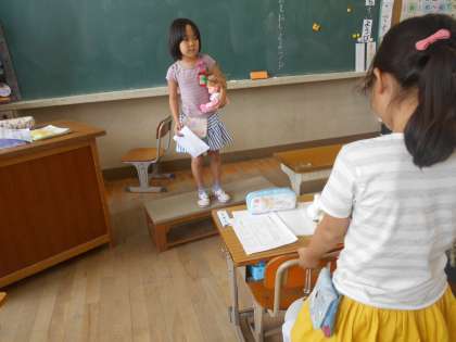 国語の「たからものをおしえよう」という学習です。大切なものをみんなで紹介し合いました。