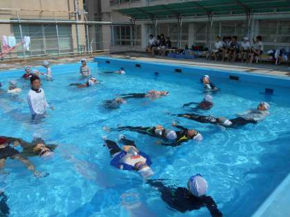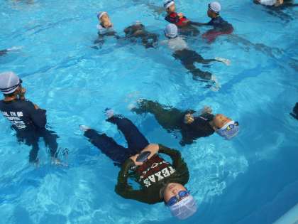 溺れてしまった時には、身近にあるペットボトルやボール、ごみ袋、ランドセルなども浮く助けになります。