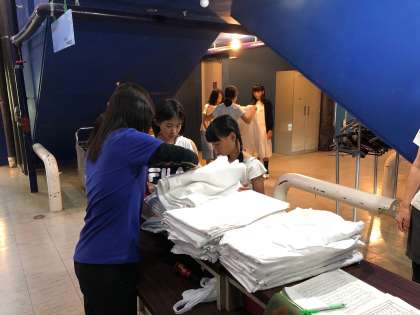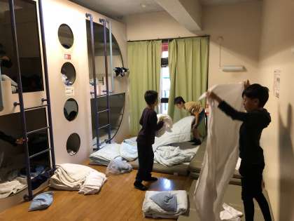 みんな、時間通りに起床しました。きちんとシーツをたたみ、チェックも合格です!