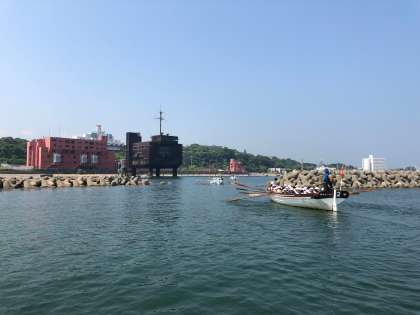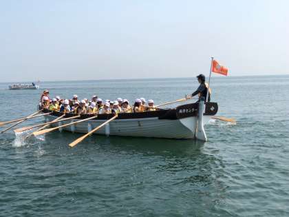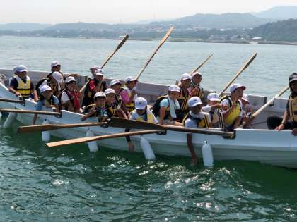 海の上でも水分補給しながら、みんなで一生懸命こぎました。