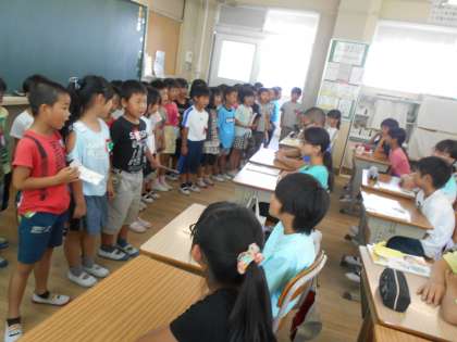 朝の時間に1年生が日ごろのお礼を伝えにきてくれました。